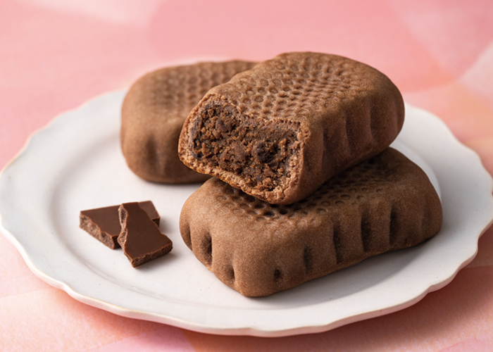 ベルギー産ダークチョコレートとチョコレートチップを練り込んだ餡を、バターを使ったなめらかなココア生地で包みました。